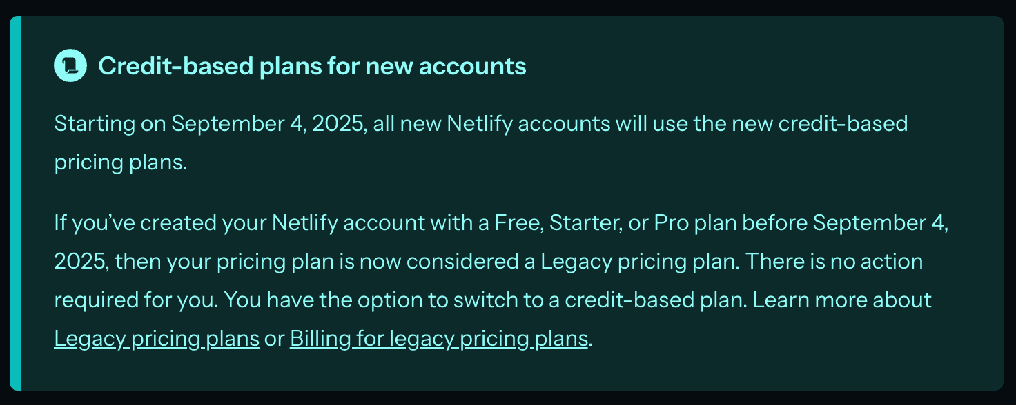 In September of last year, Netlify transitioned to a new credit-based pricing model.